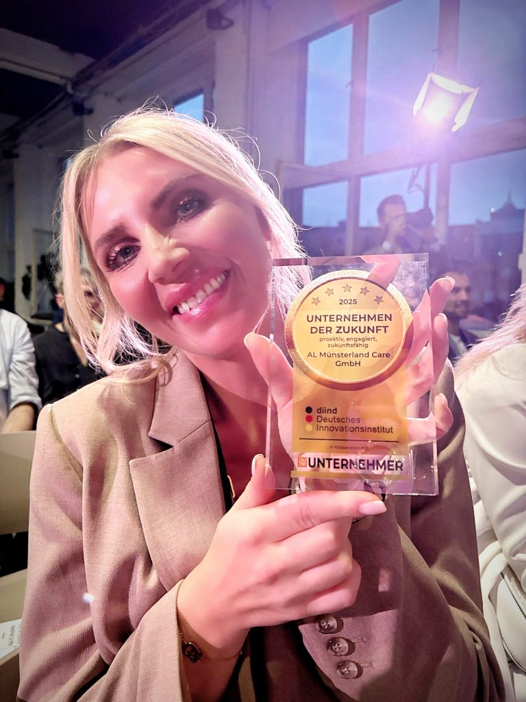 Als wir vom Deutschen Innovationsinstitut angesprochen wurden, ob wir für den Auswahlprozess zur Verfügung stehen, haben wir uns sehr gefreut. Besonders darüber, dass ein vergleichsweise junges Unternehmen aus dem schönen Münsterland auf sich aufmerksam gemacht hat. Allein das war für uns eine große Wertschätzung und Bestätigung. Nun, einige Monate später, haben wir den Auswahlprozess erfolgreich durchlaufen und dürfen das Siegel nutzen. Unsere Geschäftsführerin Alexandra hat die Auszeichnung im Namen unseres Teams entgegengenommen und kam aus dem Strahlen – verständlicherweise – gar nicht mehr heraus!